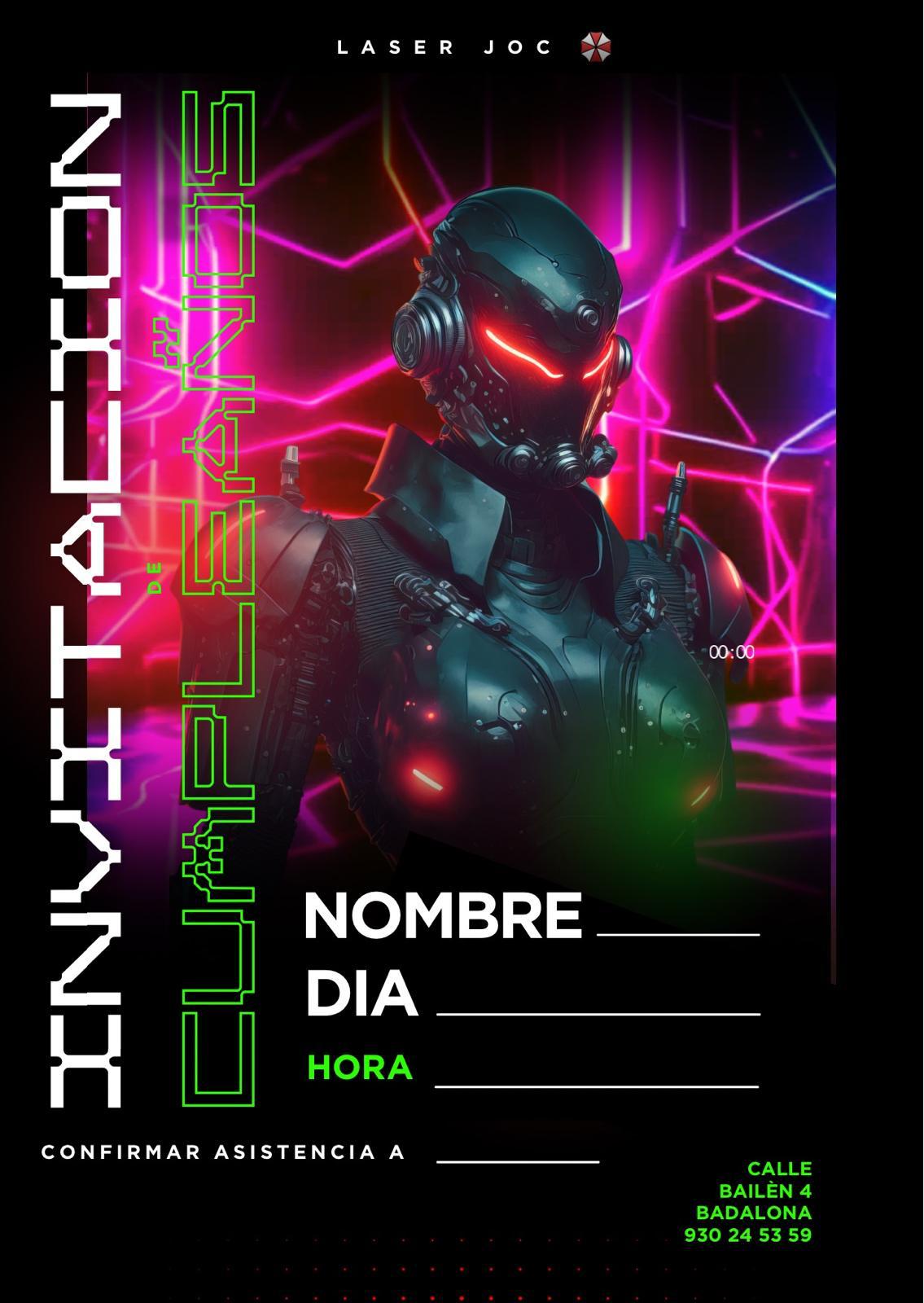 Haz clic en el siguiente enlace para descargar las invitaciones a Laser Joc. De esta manera, podrás enviarlas fácilmente a tus invitados y amigos. ¡Prepárate para disfrutar de una experiencia única!